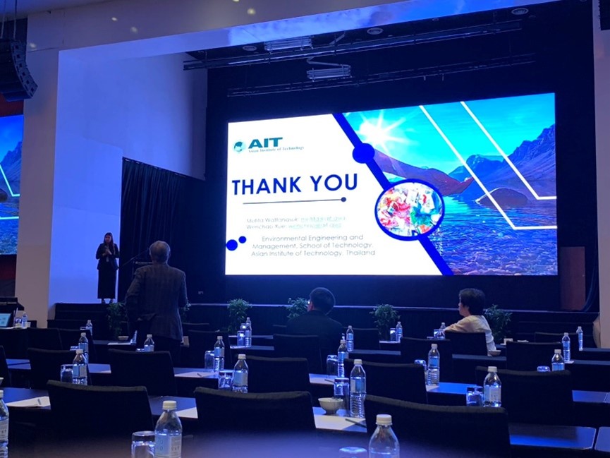 During the symposium, Ms. Mutita delivered a presentation titled “Elimination of Microplastics in Urban Decentralized Wastewater Treatment: A Case Study in the Bangkok Metropolitan Region, Thailand.” The study, conducted under the guidance of Dr. Wenchao Xue, Director of BRRC and Associate Professor at AIT, focused on the potential of decentralized wastewater treatment systems to address microplastic pollution. These systems are gaining popularity in developing countries as cost-effective alternatives to traditional centralized treatment plants. The research aimed to assess their ability to remove microplastics, which have become a significant environmental concern in urban areas. The findings are expected to inform future decisions on wastewater treatment infrastructure and encourage the broader adoption of decentralized systems as sustainable alternatives to conventional facilities.