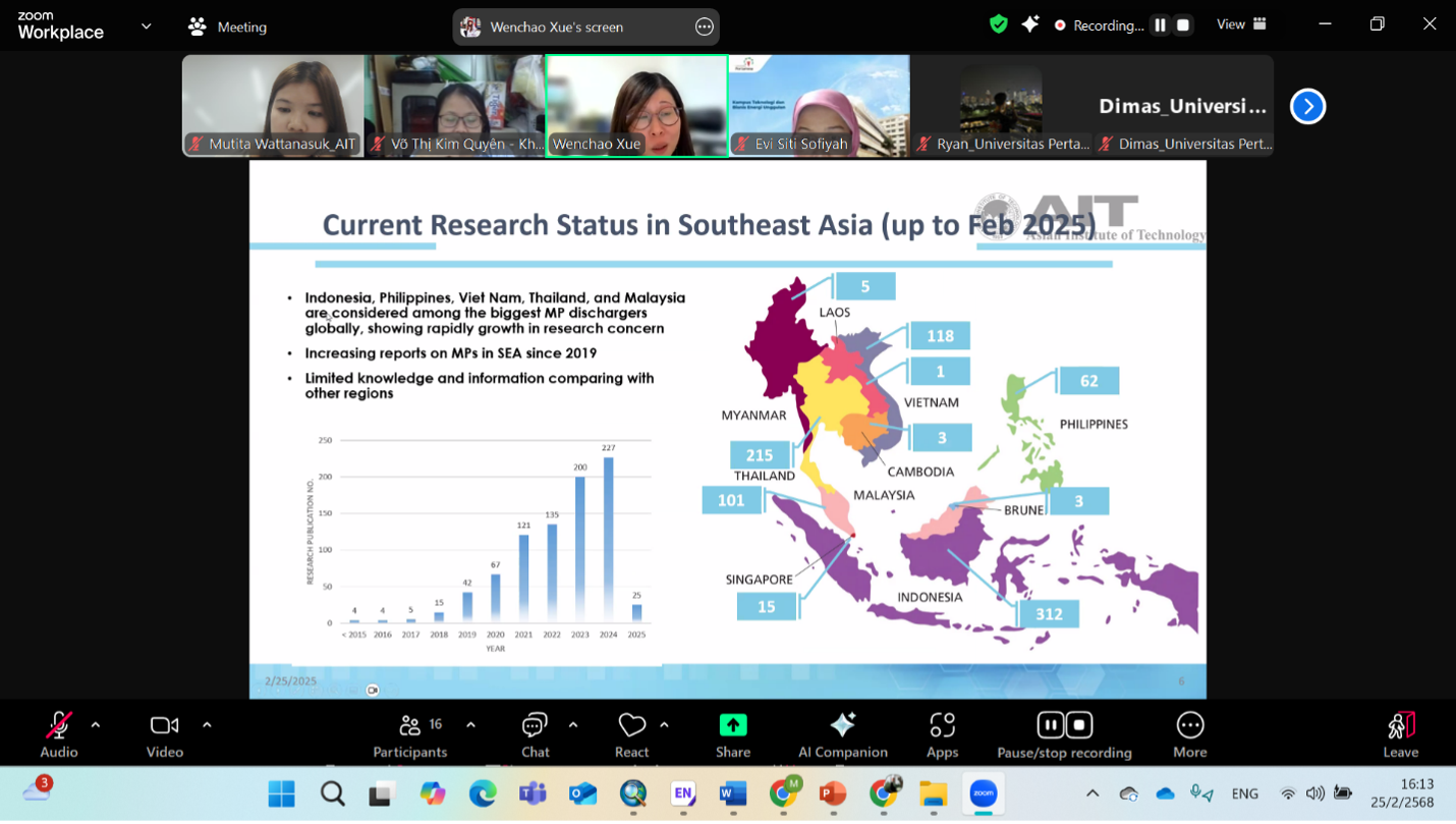 Bangkok, 25 February 2025 — In a critical step toward tackling the mounting crisis of microplastic pollution across Southeast Asia, researchers from Thailand, Vietnam, and Indonesia convened virtually for the first progress meeting of the Asia-Pacific Network (APN)-funded project. Led by Dr. Wenchao Xue of the Asian Institute of Technology (AIT), the meeting marked a significant milestone in building regional scientific cooperation to address one of the region’s most pressing environmental threats.